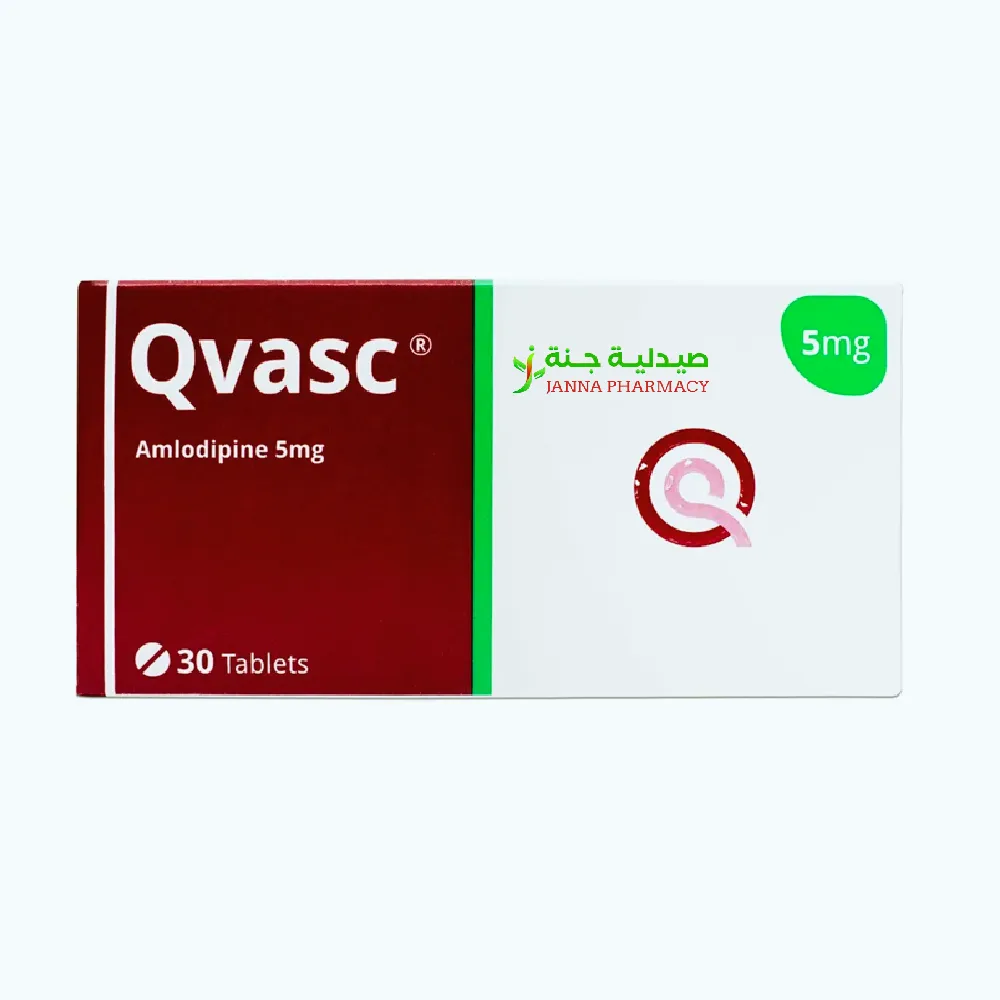 Qvasc 5 mg contains Amlodipine, a calcium channel blocker used to treat high blood pressure (hypertension) and angina (chest pain). It works by relaxing blood vessels, improving blood flow, and reducing the workload on the heart.